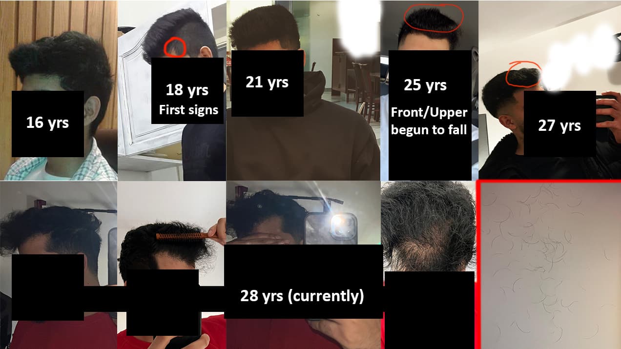 From age 18: First signs of hair loss (just a suspicion at that point).