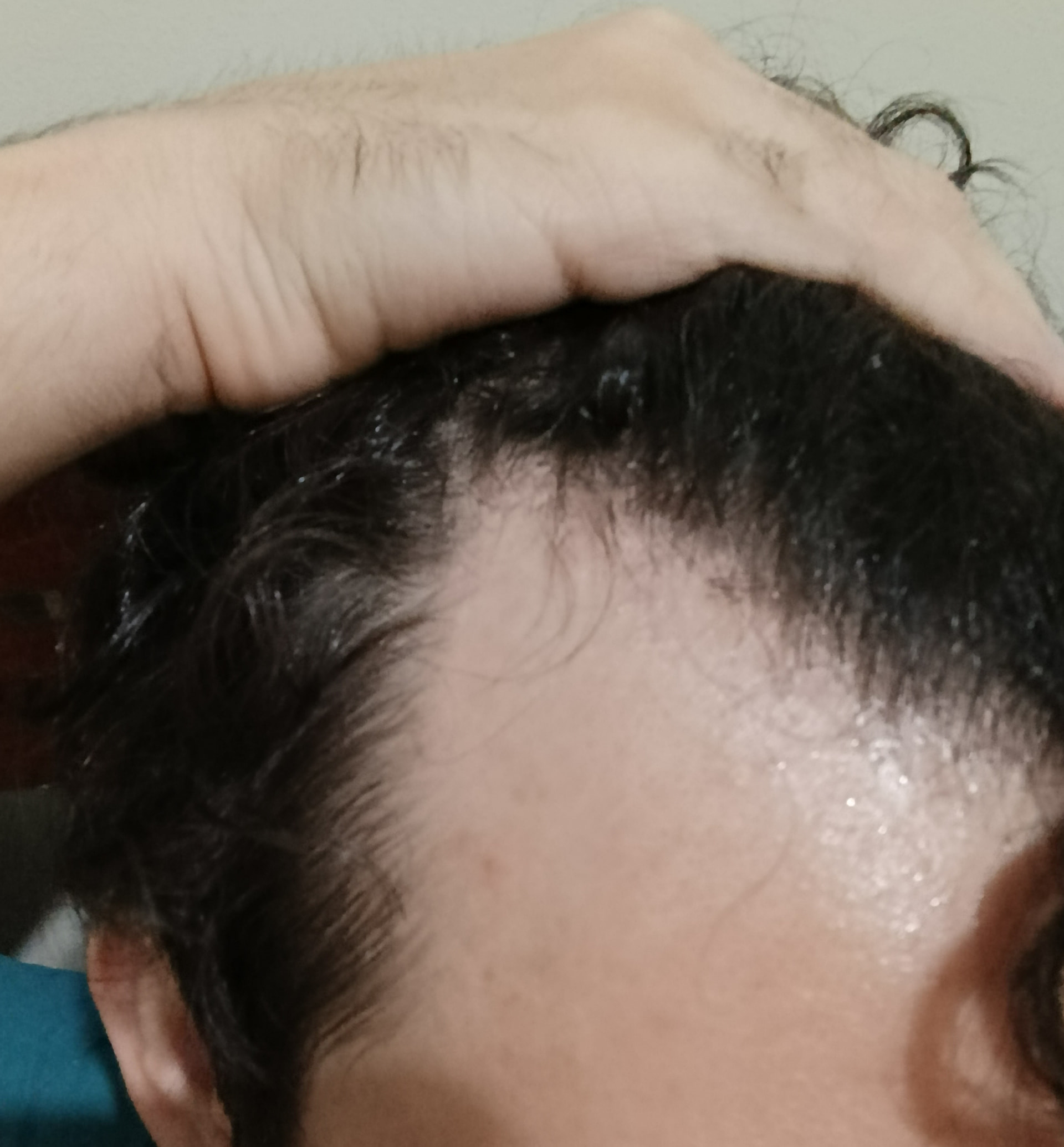 I’ve been noticing hair loss localized mainly to the frontal hairline, especially around the temples. What concerns me is that it doesn’t look like classic diffuse thinning, but rather a recession of the hairline, with areas where the skin is more visible and some very thin, short hairs in between.